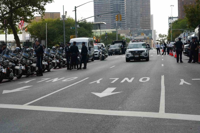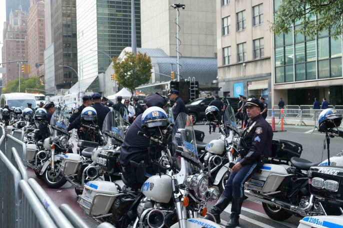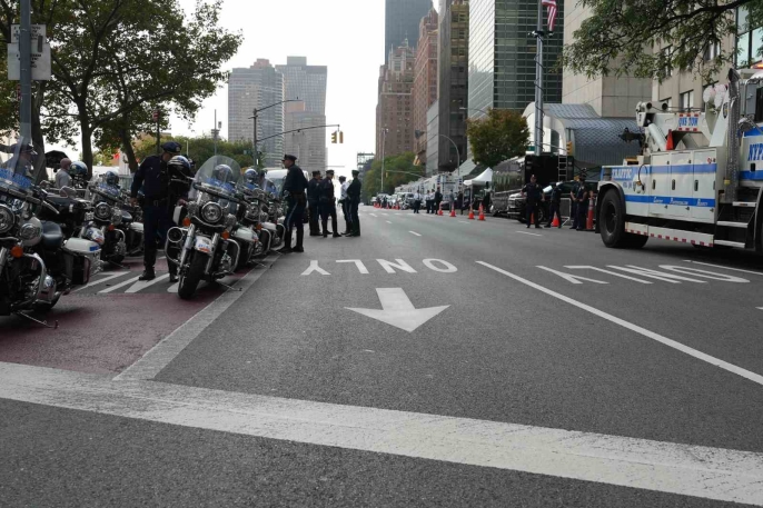 ABD Gizli Servisi de güvenlik çalışmalarına katılıyor. Olağanüstü güvenlik önlemlerinin alındığı New York sokaklarının büyük bir kısmı trafiğe kapatıldı. Çok sayıda helikopter gün boyu BM binası ve çevresinde denetim yapıyor. Hudson Nehri’nden de polis botları sürekli olarak görevlerini yerine getiriyor.