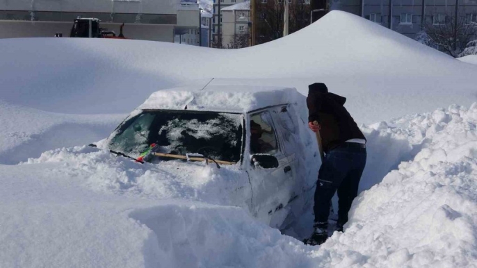 Bitlis'te etkili olan yoğun kar yağışı hayatı durma noktasına getirdi. Metrelerce yüksekliğe ulaşan kar kalınlığı nedeniyle birçok araç tamamen kar yığınlarının altında kaldı. Sabah saatlerinde araçlarına ulaşmaya çalışan vatandaşlar, adeta karla mücadele ederek araçlarını bulmaya çalıştı.