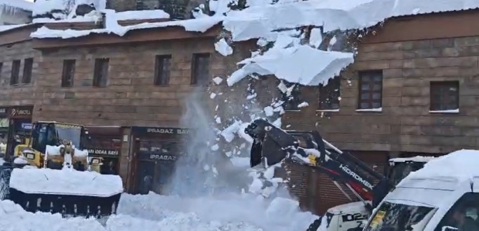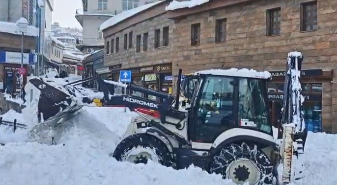 Bitlis Belediyesi'ne ait iş makinesi, çarşı merkezinde kar temizliği yaptığı sırada, büyük bir gürültüyle tonlarca ağırlığındaki kar kütleleri şelale gibi üzerine aktı. O sırada çevrede bulunan vatandaşlar, büyük gürültüyle gerçekleşen olayın ardından kısa süreli panik yaşadı.
