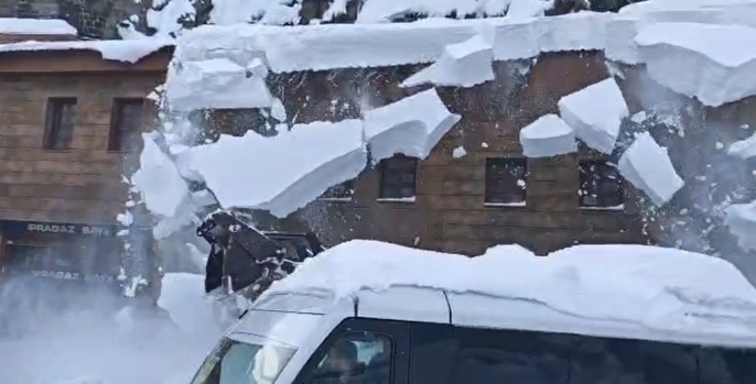 Bitlis'te bir binanın çatısında biriken tonlarca ağırlıktaki kar kütlesi, iş makinesinin üzerine düşerek paniğe neden oldu. Büyük bir gürültüyle meydana gelen olayda, herhangi bir can kaybı veya yaralanma yaşanmaması ise sevindirdi.