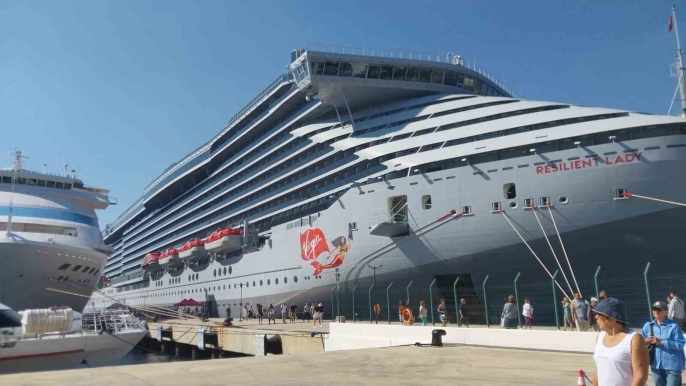Sabah saatlerinde Rodos Limanı'ndan Bodrum'a demir atan 277 metre uzunluğundaki "Resilient Lady" isimli gemi, akşam saatlerinde Mikonos Limanı'na doğru yola çıkacak. Gemi, ağırlıklı olarak Amerikalı turistlerden oluşan 2 bin 440 yolcu ve 1148 personeli taşıyor.