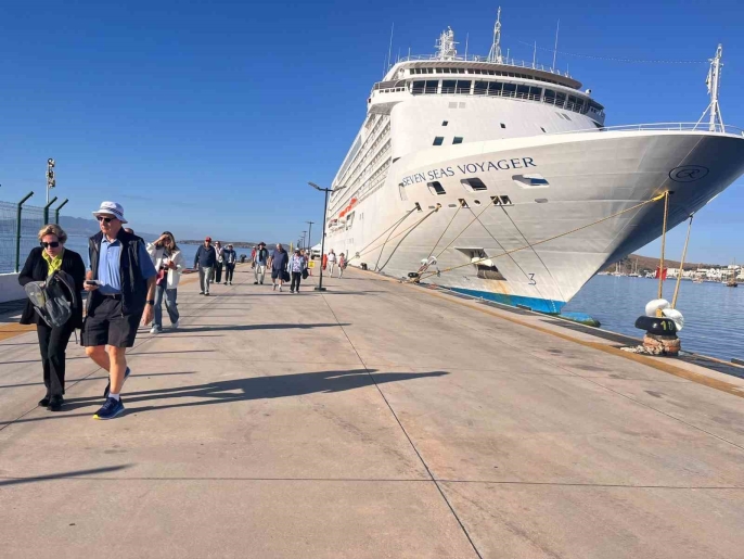 Muğla'nın Bodrum ilçesi, 'Seven Seas Voyager' isimli yolcu gemisinin gelişiyle birlikte toplam 674 turisti ağırladı.