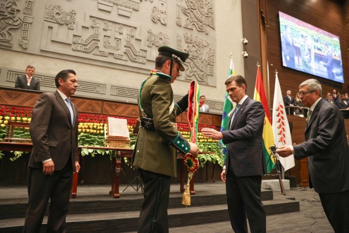 Merkez sağ Hristiyan Demokrat Parti (PDC) adayı Rodrigo Paz, babası eski devlet başkanı Jaime Paz Zamora'nın izinden giderek 58 yaşında ülkenin lideri oldu. Parlamento binasındaki coşkulu törenin ardından askeri geçide katılan Paz'ı bu önemli gününde 70'ten fazla ülkeden heyetler ve yerel önde gelen isimler yalnız bırakmadı. Özellikle Arjantin Devlet Başkanı Javier Milei ve Şili Devlet Başkanı Gabriel Boric'in törende bulunması dikkat çekti.