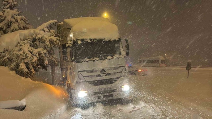 Bolu Dağı'nda kar kalınlığı 40 santimetreyi aştı, ağır araç geçişine kapatıldı