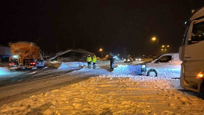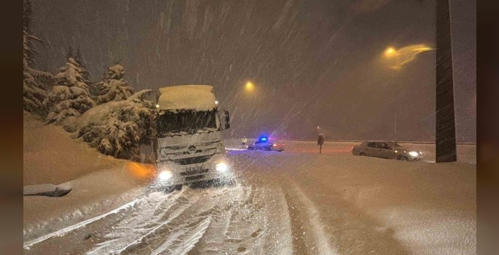Yoğun kar yağışı ve buzlanma riski nedeniyle D-100 kara yolu Bolu Dağı geçişi, İstanbul ve Ankara yönlerinde ağır tonajlı araçların trafiğine kapatıldı. Polis ekipleri, bu araçları Elmalık Kavşağı’ndan TEM Otoyolu’na yönlendiriyor. Bölgede kar yağışının etkisini azaltması ve yolun güvenli hale gelmesinin ardından ağır tonajlı araçların geçişine izin verileceği bildirildi.