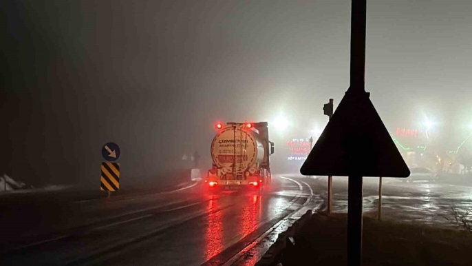 Bolu Dağı geçişinde etkili olan yoğun sis ve sağanak yağış, ulaşımda aksamalara neden oldu. Kar yağışı ihtimaline karşı Karayolları ekipleri bölgede teyakkuza geçti.