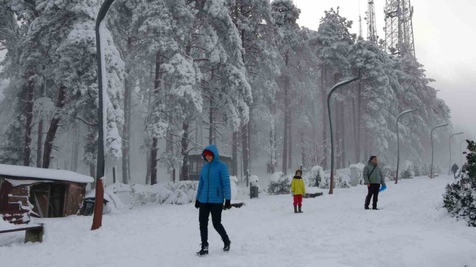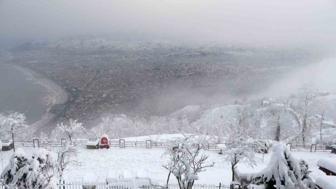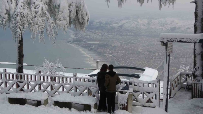 Ordu'nun 'seyir terası' olarak bilinen Boztepe, denizden 530 metre yükseklikte yer alıyor ve bu hafta kar yağışıyla birlikte beyaz bir örtüyle kaplandı.