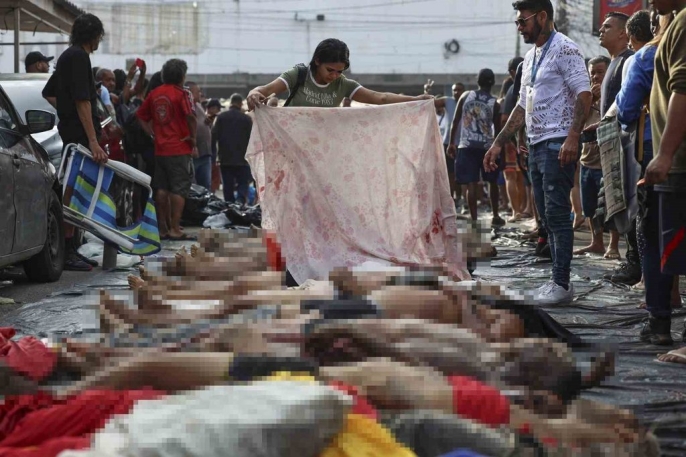 Rio de Janeiro polisi, favela olarak bilinen gecekondu mahallelerine yapılan operasyonda can kaybının 4’ü polis 132’ye ulaştığını belirtti. Gece boyunca cesetler, şehirdeki Penha Meydanı’na taşınırken, bazı öfkeli Brezilyalılar, polisin toplu infaz gerçekleştirdiğini iddia etti. Yetkililer, operasyonun 2 aydan uzun süre boyunca titizlikle planlandığını ve özel birimin şüphelileri ormanlık bir bölgede pusuya düşürmeyi amaçladığını ifade etti.