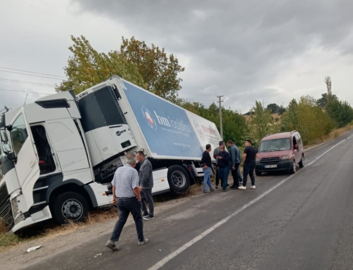 Yağmur nedeniyle zeminin kayganlaşmasıyla birlikte aracın kontrolünü yitiren tır sürücüsünün tüm çabalarına rağmen, tır şarampole yuvarlandı. Yan kenarında bulunan ağaçlara çarparak durmayı başaran tır, bu sayede tamamen devrilmekten son anda kurtuldu. Kazayla ilgili olarak soruşturma başlatıldı.