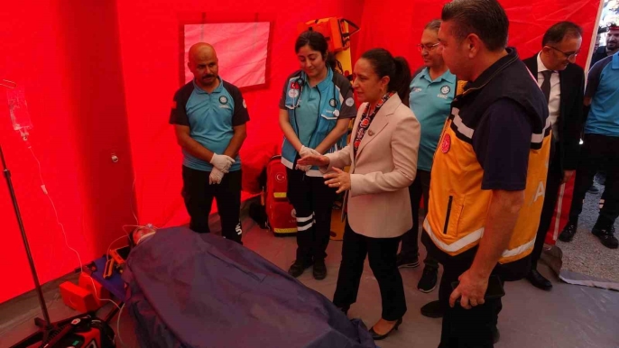 Burdur Valisi Tülay Baydar Bilgihan, tatbikat alanında incelemelerde bulundu. Vali Bilgihan, senaryonun 5.7 büyüklüğünde bir depremi simüle ettiğini, Menderes Mahallesi'nde yoğunlaştıklarını ve 125 vatandaşın etkilendiği, 30'a yakın evin hasar aldığı bir senaryo üzerinde çalıştıklarını belirtti. 23 çalışma grubunun etkinliğini test etmeyi amaçladıklarını vurguladı.