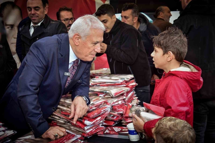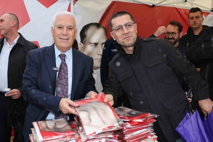 Bursa Büyükşehir Belediye Başkanı Mustafa Bozbey, Kent Meydanı'nda düzenlenen poster dağıtım etkinliğine katılarak vatandaşlarla bir araya geldi. Yağmura rağmen yoğun ilgi gören etkinlikte konuşan Bozbey, Cumhuriyet'in en büyük ortak değer olduğunu belirtti ve "17 ilçemizde 60 bin civarında Ata posteri dağıtıyoruz. Vatandaşlarımız iş yerlerini ve evlerini bu bayraklarla donatacak" dedi.