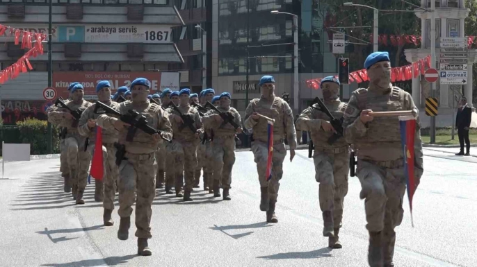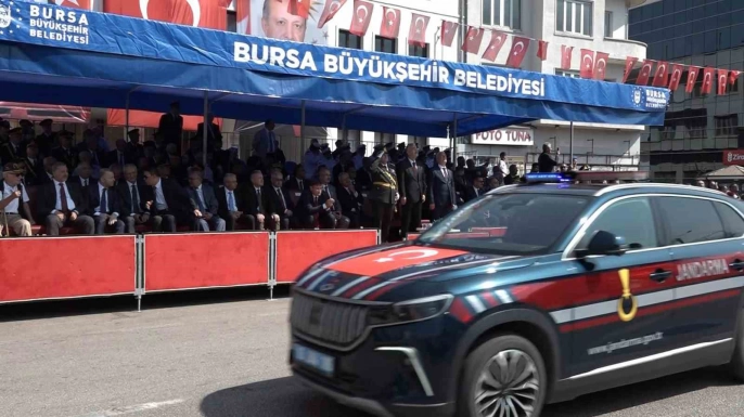 Bursa Valiliği önünde 30 Ağustos Zafer Bayramı’nın 103’üncü yılı coşkuyla kutlandı. Resmi geçit törenine katılanlar arasında, akülü motoruyla törene katılan bir çocuk da vardı ve geçiş sırasında büyük ilgi gördü. Program, Atatürk heykeline çelenk sunulması ve İstiklal Marşı’nın okunmasıyla başladı.