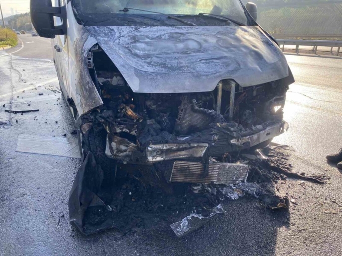 Bursa'nın Mudanya ilçesinde seyir halindeyken motor kısmından alev alan minibüs, çevredeki vatandaşları ve sürücüyü alarma geçirdi. Neyse ki, olay yerine yakın geçen BUSKİ ekiplerinin hızlı müdahalesiyle yangının daha fazla büyümesi engellendi.