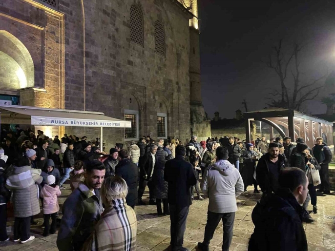 Yatsı namazı öncesinde Kur'an-ı Kerim tilaveti ve mevlit okunurken, yapılan sohbetlerde gecenin anlamı ve önemi üzerinde duruldu. Ayrıca, Bursa Büyükşehir Belediyesi tarafından cami çıkışında vatandaşlara çeşitli ikramlar sunuldu. Bu ikramlar cemaat tarafından memnuniyetle karşılandı. Program, yatsı namazının ardından edilen dualarla sona erdi.