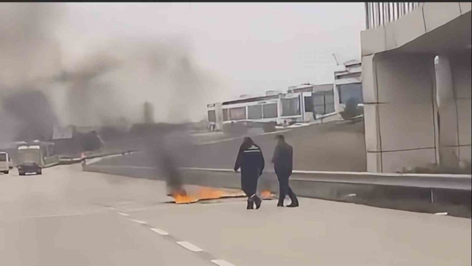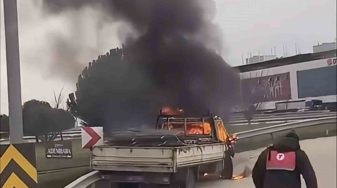 Bursa'da İzmir Yolu üzerinde seyir halindeki bir kamyonet, henüz bilinmeyen bir nedenle aniden alev aldı. Olay, Görükle dönüş kavşağında meydana geldi.