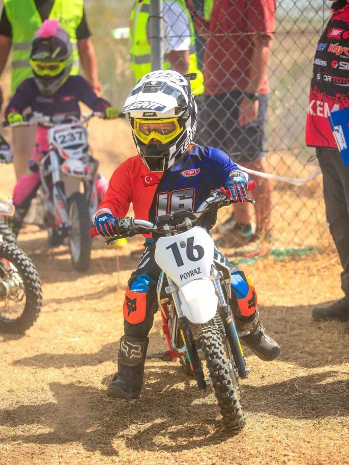 Bursa'nın Mudanya ilçesinden çıkan mini motokros sporcusu Poyraz Kalender, Türkiye Motokros Şampiyonası 2025-50cc Mini Sıfır kategorisinde şampiyonluğa ulaşarak büyük bir başarıya imza attı. Azmi ve pistteki performansıyla dikkatleri üzerine çeken genç sporcu, sezon boyunca gösterdiği istikrarlı başarıyı İzmir'de düzenlenen Türkiye Motosiklet Federasyonu (TMF) ödül töreninde aldığı kupa ile taçlandırdı.