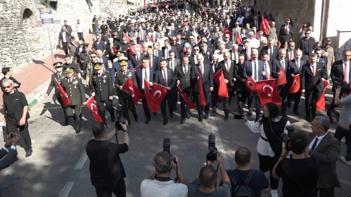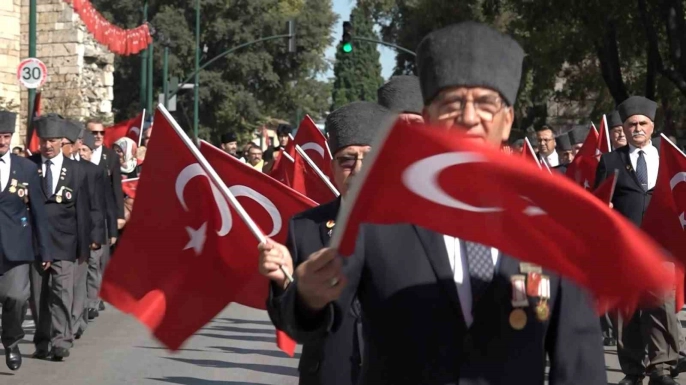 Tophane’den başlayıp Heykel’de son bulan kortej yürüyüşüyle başlayan kutlamalara, Bursa Büyükşehir Bando Takımı, Mehter Takımı, kılıç kalkan ekibi ve gaziler katıldı. Bursa Valisi Erol Ayyıldız’ın yanı sıra Bursa Büyükşehir Belediye Başkanı Mustafa Bozbey, Yıldırım Belediye Başkanı Oktay Yılmaz, Osmangazi Belediye Başkanı Erkan Aydın, Nilüfer Belediye Başkanı Şadi Özdemir, Orhaneli Belediye Başkanı Ali Osman Tayır, milletvekilleri, çeşitli kurum ve kuruluşların amirleri ve çok sayıda vatandaş da kortejde yer aldı. Atatürk Heykeli önünde saygı duruşu ve İstiklal Marşı’nın okunmasının ardından çelenk sunma töreni gerçekleştirildi.