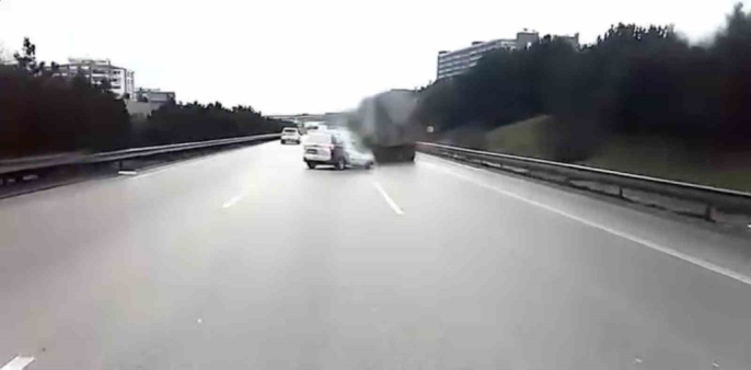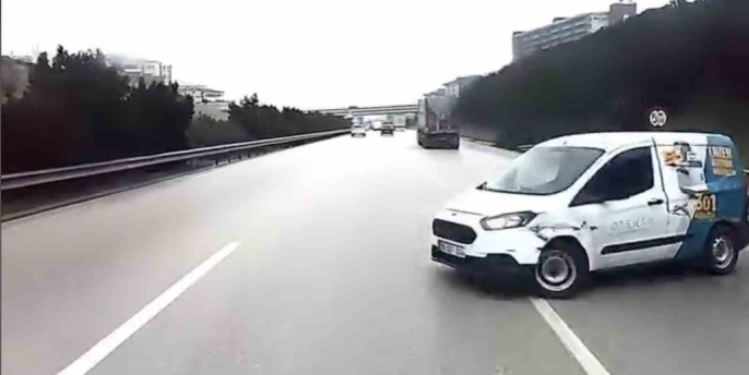 Seyir halindeki kamyonet, ani bir şekilde direksiyon hakimiyetini kaybederek bariyerlere çarptı. Bu çarpmanın etkisiyle aracın kendi ekseni etrafında dönmeye başlaması, otoyolda adeta bir panik havası estirdi. Yaşanan anlar, o sırada olay yerinden geçen bir kamyonun araç içi kamerasına saniye saniye yansıdı.
