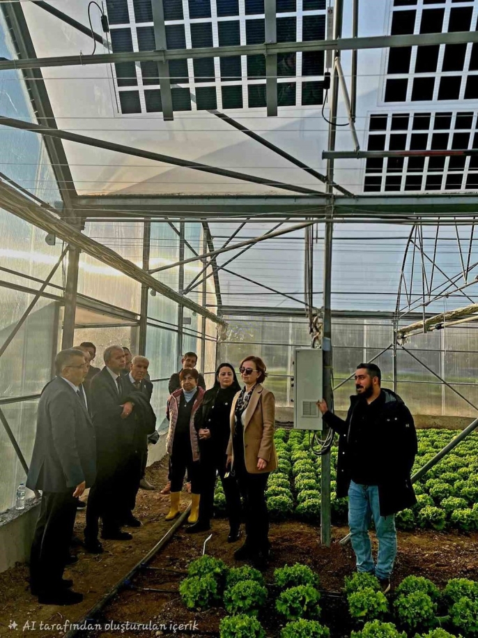Proje kapsamında seranın içine entegre edilen hareketli güneş panelleri, seracılık faaliyetlerinde yenilenebilir enerji kaynaklarının etkin kullanımını hedefliyor. Panellerin oluşturduğu kısmi gölgelemeyi tolere ederek üretimin devamını sağlayan patentli agrivoltaik sistemlerin, gelecekte seracılık sektörüne önemli bir ekonomik avantaj sağlaması bekleniyor. Güneşten güç alan seraların, iklim değişikliğiyle mücadelede kritik bir rol üstlenerek tarımda verimlilik ve sürdürülebilirlik hedeflerine ulaşmada güçlü bir çözüm sunacağı öngörülüyor. Proje tanıtım günü etkinliğine Rektör Yardımcısı Prof. Dr. Zekeriya Arı, Ziraat Fakültesi Dekanı Prof. Dr. İlhan Turgut ve AR-GE Koordinatörü Prof. Dr. Esra Karaca gibi önemli isimler katılarak seranın teknik altyapısı ve proje hedefleri hakkında bilgi aldılar.