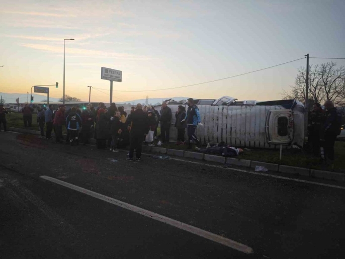 Buzlanan yolda can pazarı: İşçi servisi devrildi, 16 yaralı
