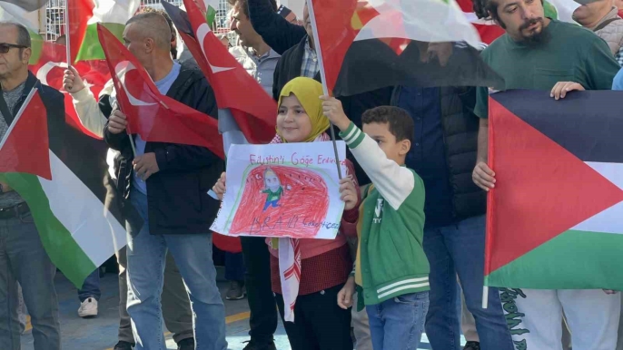 Filistin’e Destek Platformu adına konuşma yapan Zeynel Kılıç, "Yüreği Gazzeli kardeşlerimizle birlikte atan aziz milletimiz ve tüm insanlık, bütün engellemelere rağmen Sumud Filosu kararlılıkla fiili olarak Gazze karasularına ulaştı ve abluka delindi. Bundan sonra insanlık vicdanı, ablukadaki bu sızıntıyı bir tufana dönüştürecek ve Gazze’ye kesintisiz insani yardım girene kadar durmayacaktır. Biz, Filistin’e Destek Platformu olarak Sumud ve Özgürlük Filosu’nun bu girişimlerini destekliyor, ablukayı delmek için çabalayan aktivistlerle dayanışmamızı ifade ediyoruz" dedi. Kılıç, Filistinli direnişçilerin yanında olduklarını vurgulayarak, "Filonun İsrail’in hukuksuz müdahalesine maruz kaldığı bu günler, aslında siyonist İsrail’in Gazze’deki Filistin halkına uyguladığı soykırımın ikinci yılını tamamlamak üzere olduğu günlerdir. Bundan iki yıl önce Gazze’deki Filistin direnişi, bölgemizin ve dünyanın en büyük problemi hâline gelen siyonist varlığa hayati bir darbe vurdu. 7 Ekim 2023’te başlayan Aksa Tufanı, askeri bir operasyon olmanın çok ötesine geçerek zulme ve adaletsizliğe karşı bir özgürlük tufanına dönüştü. Filistin’e Destek Platformu olarak tarihin en destansı asimetrik savaşını ortaya koyan ve savaş ahlakıyla ümmetin göğsünü kabartan Filistinli direnişçilerin yanında olduğumuzu bir kez daha ilan ediyoruz. Kardeşlerimizin yanında yürüyüşümüz ve kararlı duruşumuz, Filistin özgür oluncaya kadar sürecek ve asla değişmeyecektir. Gazze’nin direnişi, ümmetin parçalanmışlığına rağmen zulme karşı koymanın mümkün olduğunu kanıtlamış, Batı kamuoyunda dahi vicdanları harekete geçirmiştir. Onlarca ülkeden katılımcıyla can pahasına ablukayı delmeye çalışan aktivistler, bu karşılığın sadece bir tezahürüdür. Bugün hem Doğu’da hem Batı’da İsrail istenmeyen bir devlet, yöneticileri ise istenmeyen kişiler konumuna gelmiştir. İsrail’in işgal ve soykırım politikalarının sona ermesi için ciddi ekonomik, diplomatik ve siyasi yaptırımlar uygulanmalı ve işgalci uluslararası baskıyla geri adım atmaya zorlanmalıdır" ifadelerini kullandı.