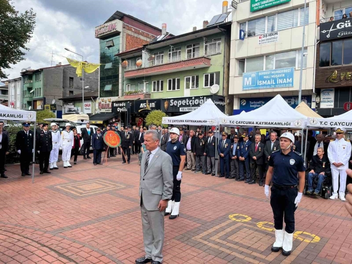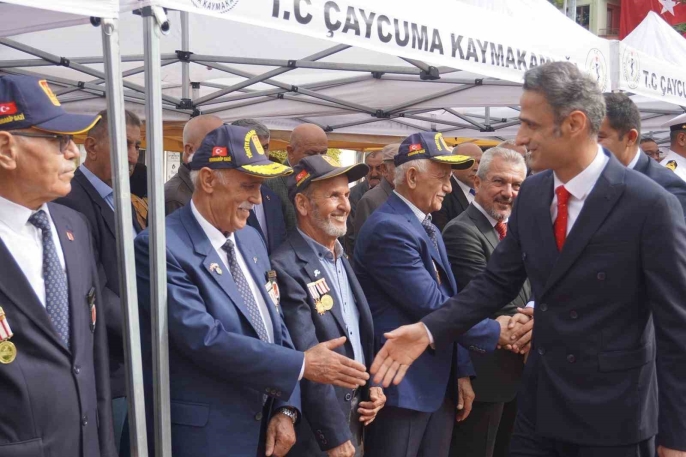 Çaycuma ilçesinde, 19 Eylül Gaziler Günü dolayısıyla anlamlı bir tören düzenlendi. Atatürk Anıtı'na çelenk sunumuyla başlayan program, saygı duruşu ve İstiklal Marşı'nın okunmasıyla devam etti.