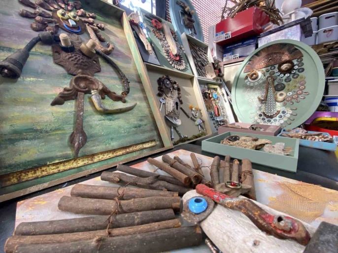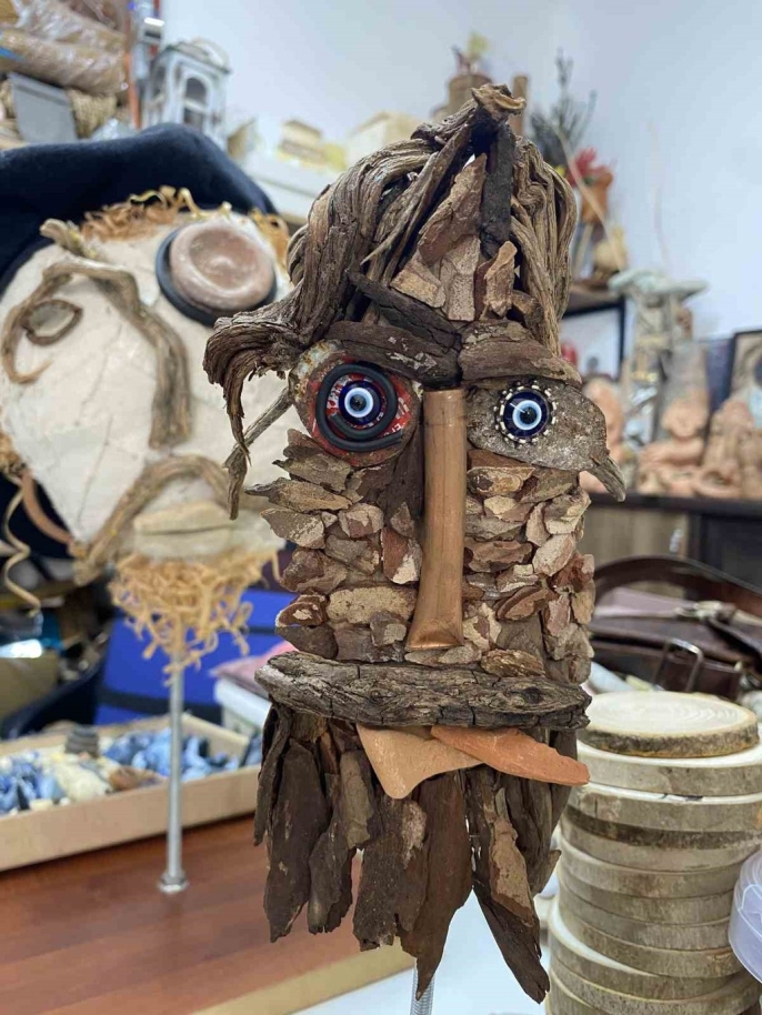 Çeşme'de uzun yıllar hediyelik eşya dükkanı işlettikten sonra emekli olan Nihat Atagöz, sanatla dolu bir yaşam sürdürüyor. Yaklaşık 50 yıl önce karikatürle başladığı sanat yolculuğuna zamanla heykel sanatını da ekleyen Atagöz, çalışmalarında özgün teknikler geliştirmiş. Son yıllarda tüm odağını 'ileri dönüşüm' sanatına veren Atagöz, denizin kıyıya vurduğu odunları, doğadaki atık malzemeleri ve çevresinden topladığı çeşitli parçaları kullanarak, bunları benzersiz sanat eserlerine dönüştürüyor. Sahilden topladığı dal parçaları, taşlar ve metal kalıntılarını atölyesinde bir araya getiren usta sanatçı, her biri kendine özgü karakterler barındıran figürler üretiyor.