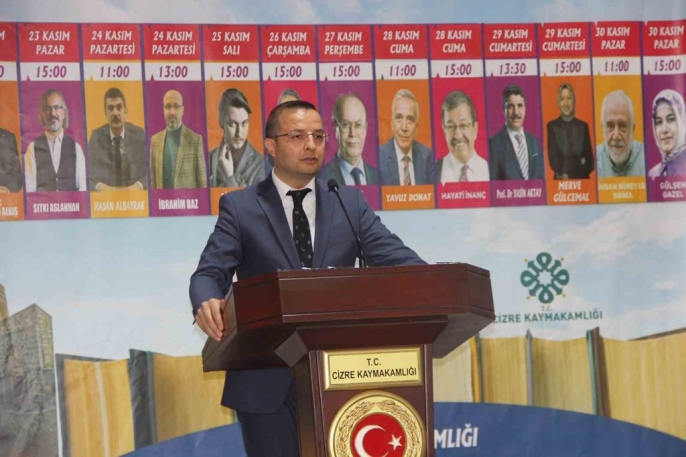 Şırnak Valisi Birol Ekici, konuşmasında bölgenin bereketini ve ekonomik katkılarını vurguladı. 'Artık bereketli hilalin parlayan yıldızıyız. Bugün Türkiye’nin petrol şehriyiz. 81 bin varil günlük petrol üretiyoruz. Türkiye’nin ekonomisine yılda 2 milyar dolar katkıda bulunuyoruz ve bu çalışmamız, başarımız artarak devam ediyor. Biz Melaye Cezerilerin, El Cezeri’nin torunlarıyız. Karanlık dönemde birbirimizle uğraşmaktan vazgeçip birlik beraberlik ve kardeşliğimizle geliştirerek ileriye doğru baktığımız zaman başaramayacağımız hiçbir şey yok. Bugün robotik kodlamanın robotun atası olan El Cezeri’nin torunları geleceğe daha umutla bakıyor. Daha çok mühendis, mimar ve doktor yetiştirmeye hep birlikte Cizre ve Şırnak olarak hazırız. Fuarın şehrimize, milletimize ve ülkemize hayırlı olmasını diliyorum' dedi. Cizre Kaymakamı Ahmet Vezir Baycar ise, 'Tarih boyunca sayısız alim, bilgin, filozof yetiştiren kentte açılışı yapılan fuarın sadece bir etkinlik değil, gençlerin ufkunu genişleten ilçeyi kültürle buluşturan bir irfan şöleni olduğunu söyleyerek, 'Kitaplar, karanlığa ışık, susuzluğa su, hakikate kapı açan en sade ama en güçlü yol arkadaşlarımızdır' ifadelerini kullandı.
