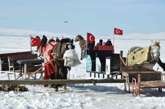 Güvenli seviyede olan 70 santimetre buz kalınlığı sayesinde, çivili nallarıyla buzda kaymadan ilerleyen atlar, arkalarındaki kızaklarla turistleri gölün derinliklerine doğru eşsiz bir yolculuğa çıkarıyor. Adrenalin tutkunları için zaman zaman dörtnala koşturulan atlar, izleyenlere adeta görsel bir şölen sunuyor. Kars Çıldır Gölü'nde Ramazan ayı boyunca devam edecek olan atlı kızak aktiviteleri, Ramazan Bayramı'nda da buz tutan göl üzerinde çeşitli etkinliklerle renklenecek.
