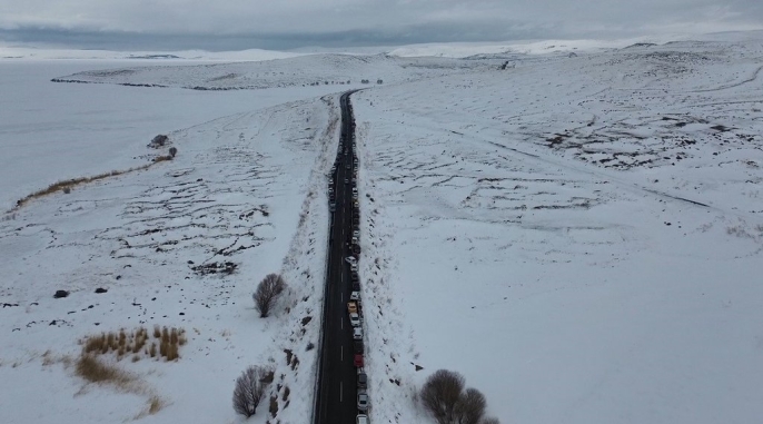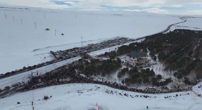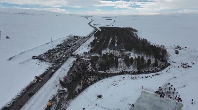 Kars’tan ve çevre il ve ilçelerden gelen yaklaşık 10 bin kişi, şenlik alanına ulaşabilmek için kilometrelerce yürümek zorunda kaldı. Bazı vatandaşlar ise şenliği kara yolu kenarından izlemeyi tercih etti. Ulaşımın güçlükle sağlandığı bu bölgedeki yoğunluk, İhlas Haber Ajansı ekiplerince havadan görüntülendi. Görüntülerde, karlı ovaların arasından kilometrelerce uzanan araç kuyruğunun sonunun görünmediği ve buz pistine dönen göl yüzeyindeki insan kalabalığı dikkat çekti.