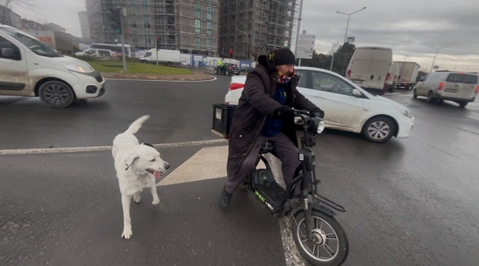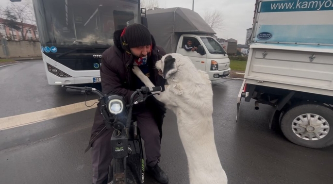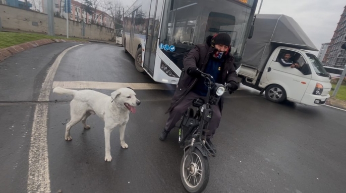 Tunca, elektrikli bisikletiyle işe gidip gelirken Karagöz'ün onu takip ettiğini, bazen bisikletin kasasına bindiğini belirtiyor. Trafikte yaşanan bu sevgi dolu anlar, gören vatandaşları da gülümsetiyor. Köpeğin sadık davranışı, sahibiyle arasındaki güçlü bağı gözler önüne seriyor.