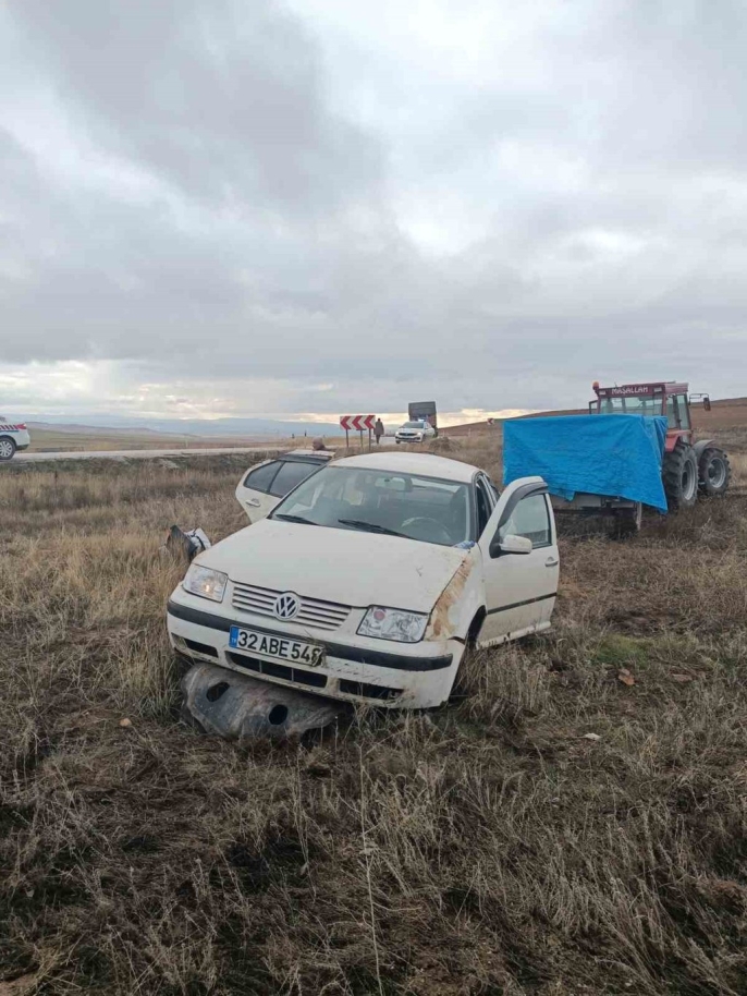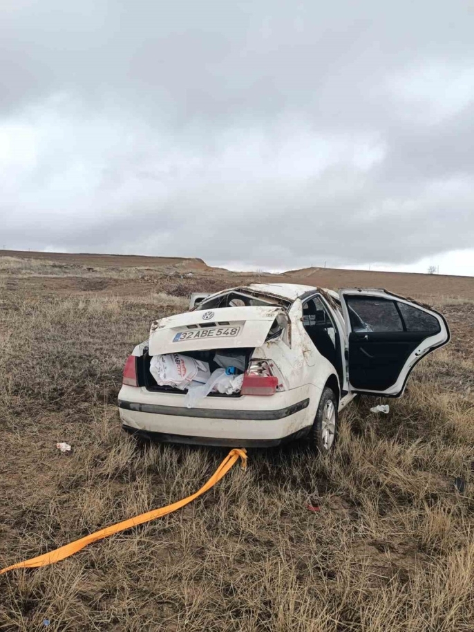 Alaca ilçesine bağlı Çopraşık Köyü yakınlarında yaşanan olayda, Mehmet K. idaresindeki 32 ABE 548 plakalı Volkswagen marka otomobil, sürücüsünün direksiyon hakimiyetini kaybetmesi sonucu yoldan çıkarak tarlaya devrildi. Kazada sürücü ve yanında yolcu olarak bulunan oğlu Yusuf Harman K. yaralandı.