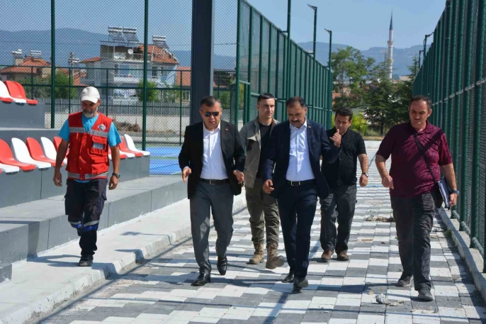 Gençlik ve Spor Bakanlığı'nın destekleriyle Dr. Mehmet Akarsu Mahallesi'ne yapılan dev spor yatırımını ziyaret eden Kaymakam Bayram ve Başkan Kara, devam eden çalışmaları yerinde inceledi. Bu yatırım kapsamında 2 çok amaçlı saha (futbol, voleybol, basketbol), 2 sert zemin tenis kortu, bocce sahaları, ok atış poligonu, kapalı tribün ve soyunma odaları, kapalı antrenman ve spor salonu ve atletizm koşu pisti yer alacak.