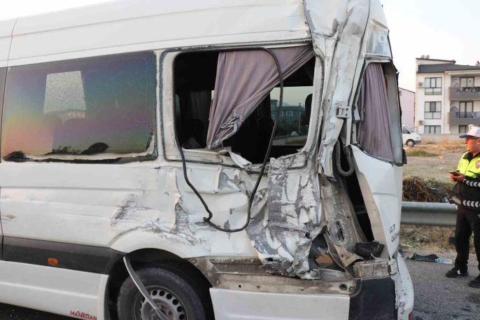 Denizli çevreyolunda feci kaza: Servis aracına kamyon çarptı, 1 ölü