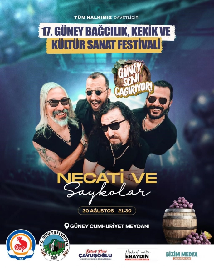 Denizli'nin Güney ilçesinde geleneksel hale gelen Bağcılık, Kekik ve Kültür Sanat Festivali, bu yıl 17'nci kez kapılarını açacak. Denizli Büyükşehir Belediyesi, Güney Belediyesi ve Bizim Medya Organizasyon işbirliğinde düzenlenecek festival, 29-31 Ağustos tarihleri arasında Cumhuriyet Meydanı'nda gerçekleştirilecek.