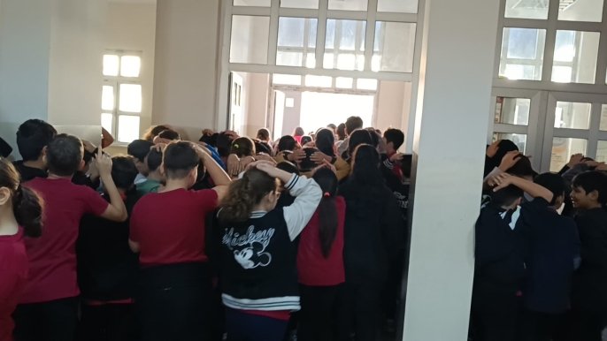 Denizli'de, Milli Eğitim Bakanlığı'nın 2025-2026 eğitim öğretim yılı tematik takvimi kapsamında ekim ayının "Afetler ve Dayanıklılık Ayı" olarak belirlenmesi üzerine okullarda eş zamanlı bir tatbikat gerçekleştirildi.