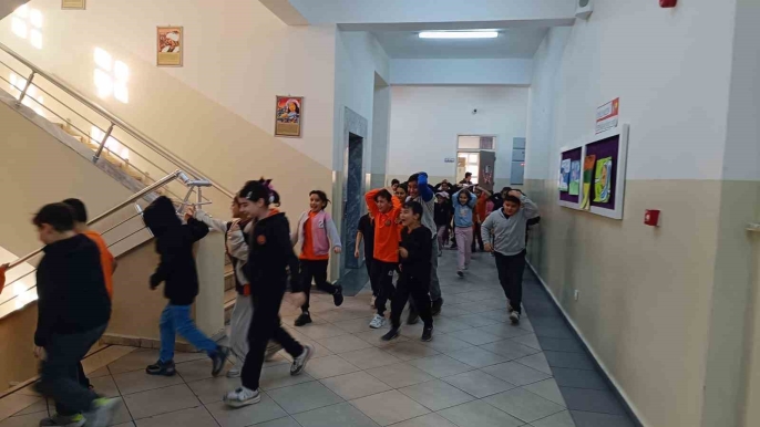 Denizli'de okullarda eş zamanlı afet tatbikatı yapıldı