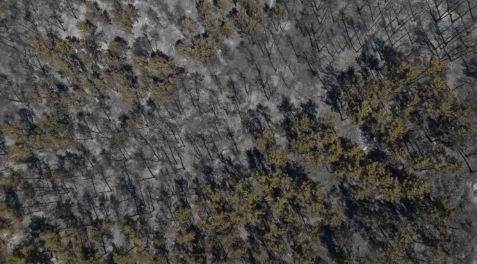 Denizli'de yangın: Bölmekaya'daki hasar havadan görüntülendi