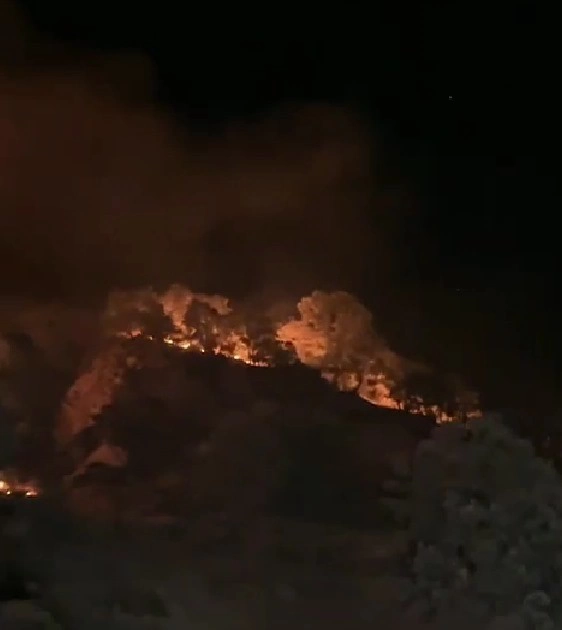 Denizli'nin Buldan ilçesinde yangın: Dağdan yuvarlanan alevli kütük yangını büyüttü