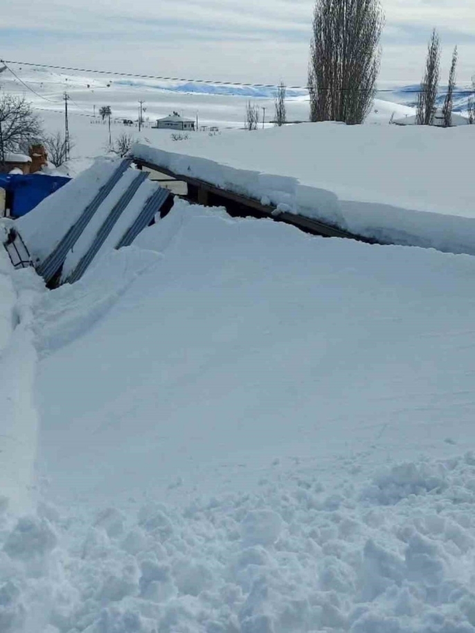 Develi ve Tomarza'da kar kalınlığı 50 santimi aştı, ahır çöktü