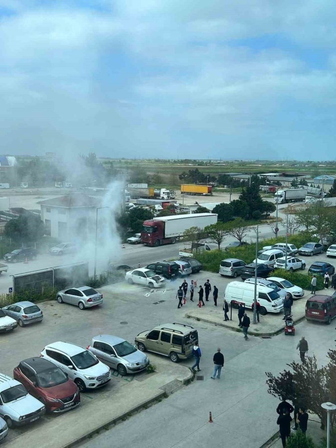 Olay, saat 10.45 sularında meydana geldi. Hastaneye yakınını getiren Turgay Ç., aracını otoparka park ettikten kısa bir süre sonra aracının motor kısmından dumanlar yükselmeye başladığını fark etti. Dumanlar hızla alevlere dönüşerek aracın tamamını sardı. Otoparktaki diğer araç sürücüleri ve hastane personeli büyük bir korku yaşarken, bazı vatandaşlar yangın tüpleriyle müdahale etmeye çalıştı.