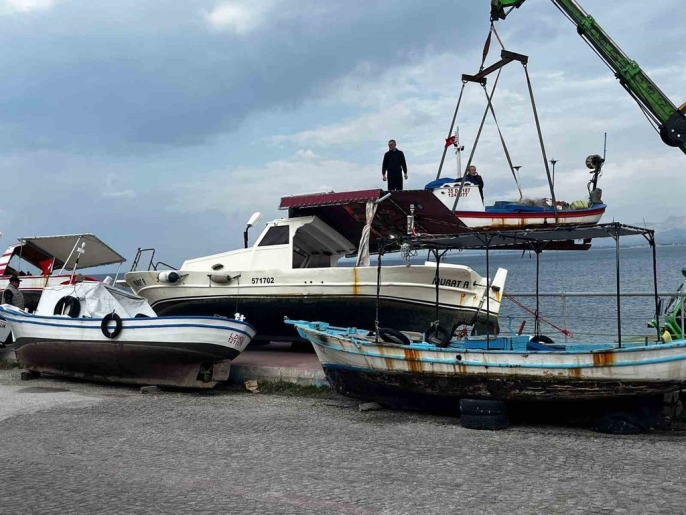 Meteoroloji İzmir Bölge Müdürlüğü'nün fırtına uyarısı üzerine harekete geçen Dikili'deki balıkçı tekneleri, Gazipaşa Mahallesi Salhane mevkisinde güvenlik amacıyla karaya alındı. Bu durum, amatör denizciler için her yıl yaşanan bir çile haline geldiğini gösteriyor.
