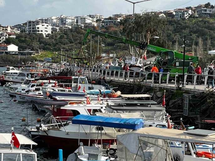 İzmir'de beklenen şiddetli fırtına öncesinde Dikili ilçesindeki balıkçı tekneleri, olası zararları önlemek amacıyla vinçlerle karaya çıkarıldı. Ancak amatör denizciler, her yıl tekrarlanan bu zorluğun son bulması için 3 yıldır bekledikleri küçük tekne yanaşma yeri projesinin bir an önce hayata geçirilmesini talep ediyor.