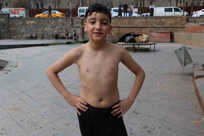 Diyarbakır'da hava sıcaklığının 7-8 dereceye kadar yükselmesiyle birlikte, çocuklar tarihi Anzele Parkı'ndaki süs havuzuna akın etti. Kış ortasında yüzmenin keyfini çıkaran minikler, doyasıya eğlenirken, çevredeki vatandaşlar bu beklenmedik manzarayı şaşkınlıkla izledi.