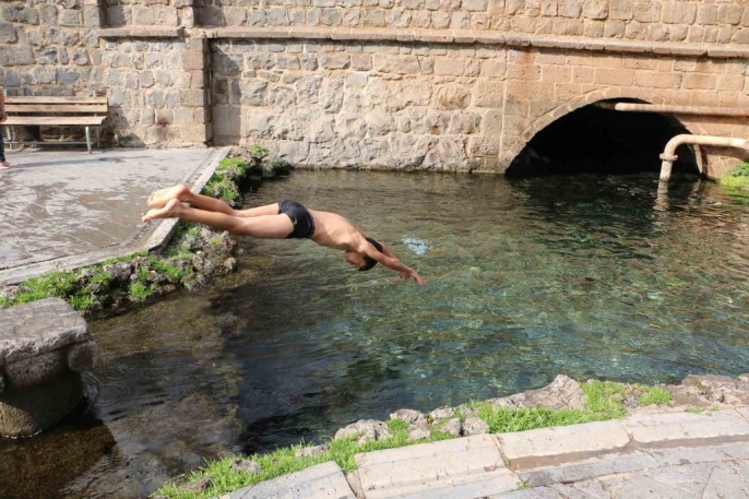 Diyarbakır'da etkili olan güneşli hava, özellikle çocuklar için adeta bir yaz gününü aratmadı. Sur ilçesinde yer alan tarihi Anzele Parkı'ndaki süs havuzunu mesken tutan çocuklar, hava sıcaklığının 7-8 derece civarında olmasına rağmen soğuktan etkilenmeden suya girdi. Bu durum, kış ortasında ortaya çıkan renkli ve neşeli görüntülerle sonuçlandı.