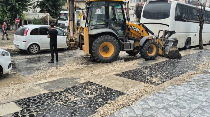 Düzce'de ana su borusu patladı: Sokaklar göle döndü