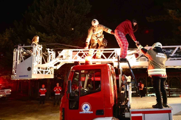 Düzce'de deprem ve yangın tatbikatı gerçeğini aratmadı