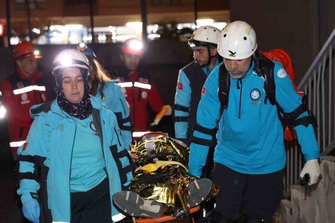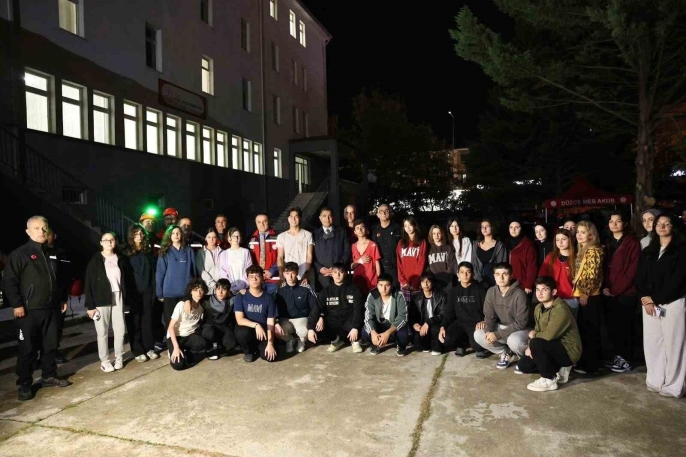 Düzce'de orta ölçekli bir deprem senaryosu üzerine gerçekleştirilen tatbikatta, Fen Lisesi pansiyonunda çıkan yangın ve mahsur kalanların kurtarılması canlandırdı.