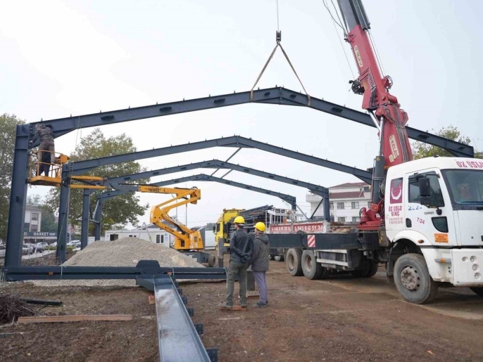 Beltaş A.Ş. tarafından yürütülen inşaat çalışmalarında taşıyıcı çelik çerçeve montajı devam ediyor. Önümüzdeki günlerde çatı panellerinin montajıyla yapının kapatılması ve üst örtü imalatına geçilmesi planlanıyor. Tüm süreçler kalite kontrol ve mühendislik standartlarına uygun şekilde ilerliyor. Bu yatırım, Düzce'nin ekonomik ve sosyal hayatına önemli bir katkı sağlayacak.
