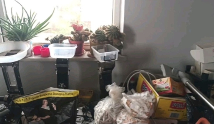 Yapılan çalışmalarda 5 adet elektrikli tütün sarma makinesi, 14 bin 400 adet tütün basılı makaron, 12 bin 200 adet boş makaron, 34 adet manuel tütün sarma aparatı ve 3 kilogram kıyılmış tütün ele geçirildi. Ele geçirilen tüm malzemelere el konuldu.